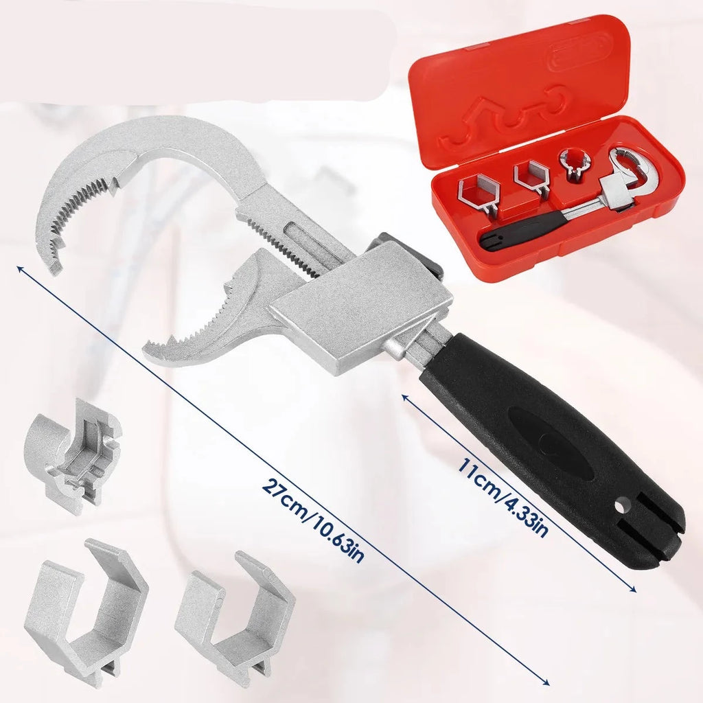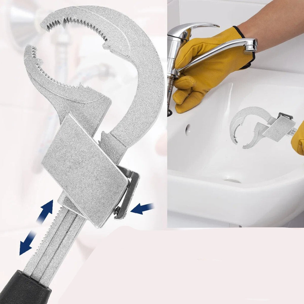 A mais recente chave multifuncional é universal para mais de 99% das porcas, especialmente para desmontagem e montagem de louças sanitárias, porcas de tubulação, etc.