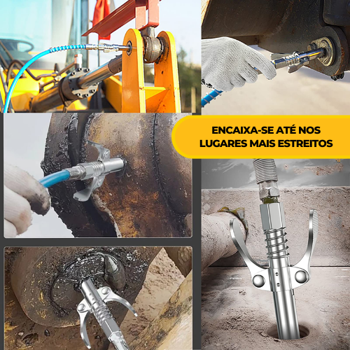 Com uma tecnologia exclusiva de engate rápido que trava e solta facilmente, ele garante uma lubrificação precisa, sem mãos e livre de vazamentos, reduzindo o tempo de manutenção e maximizando a produtividade do profissional.